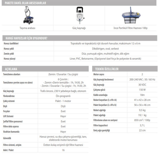 Robot boyutları (L x W x h) : 41 x 42 x 28 cm